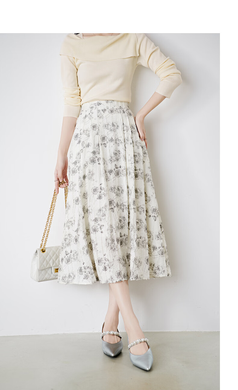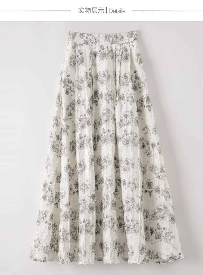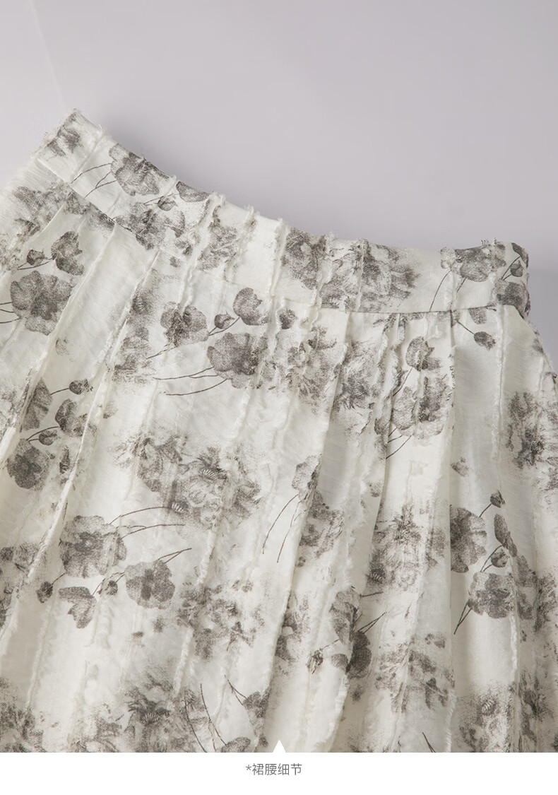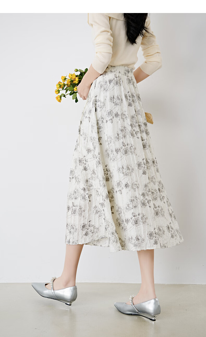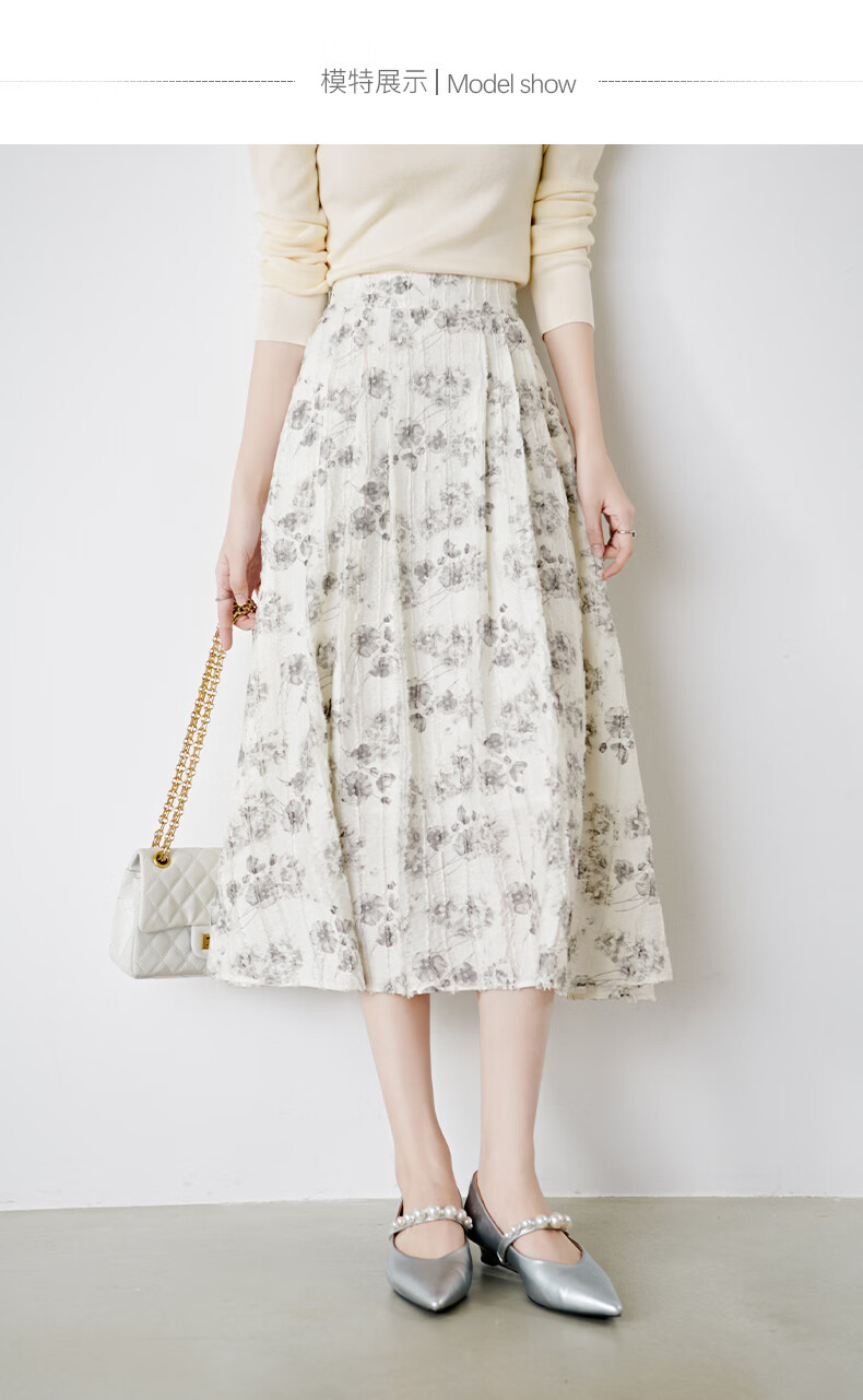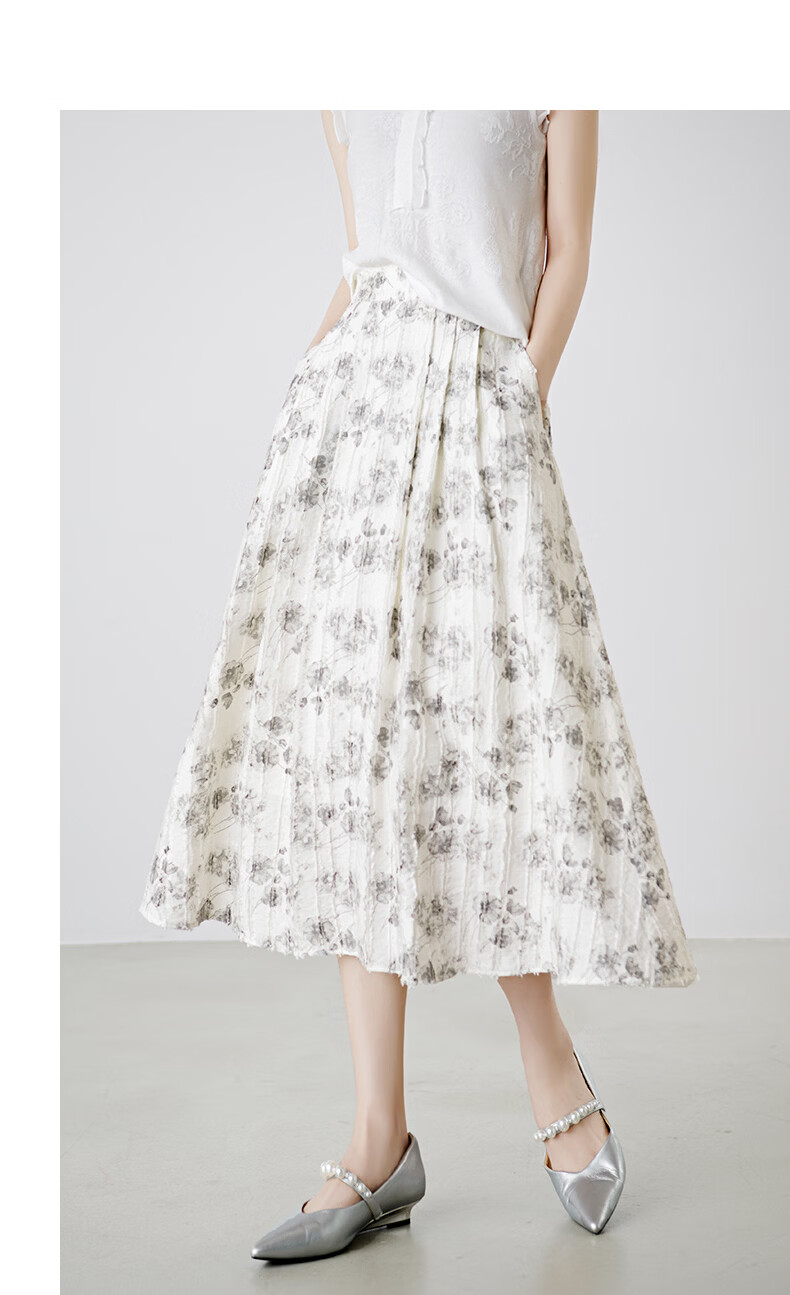 晚白2026年春款时尚优雅水墨印花半裙后松紧舒适显瘦大摆带口袋半身裙 米白色 M