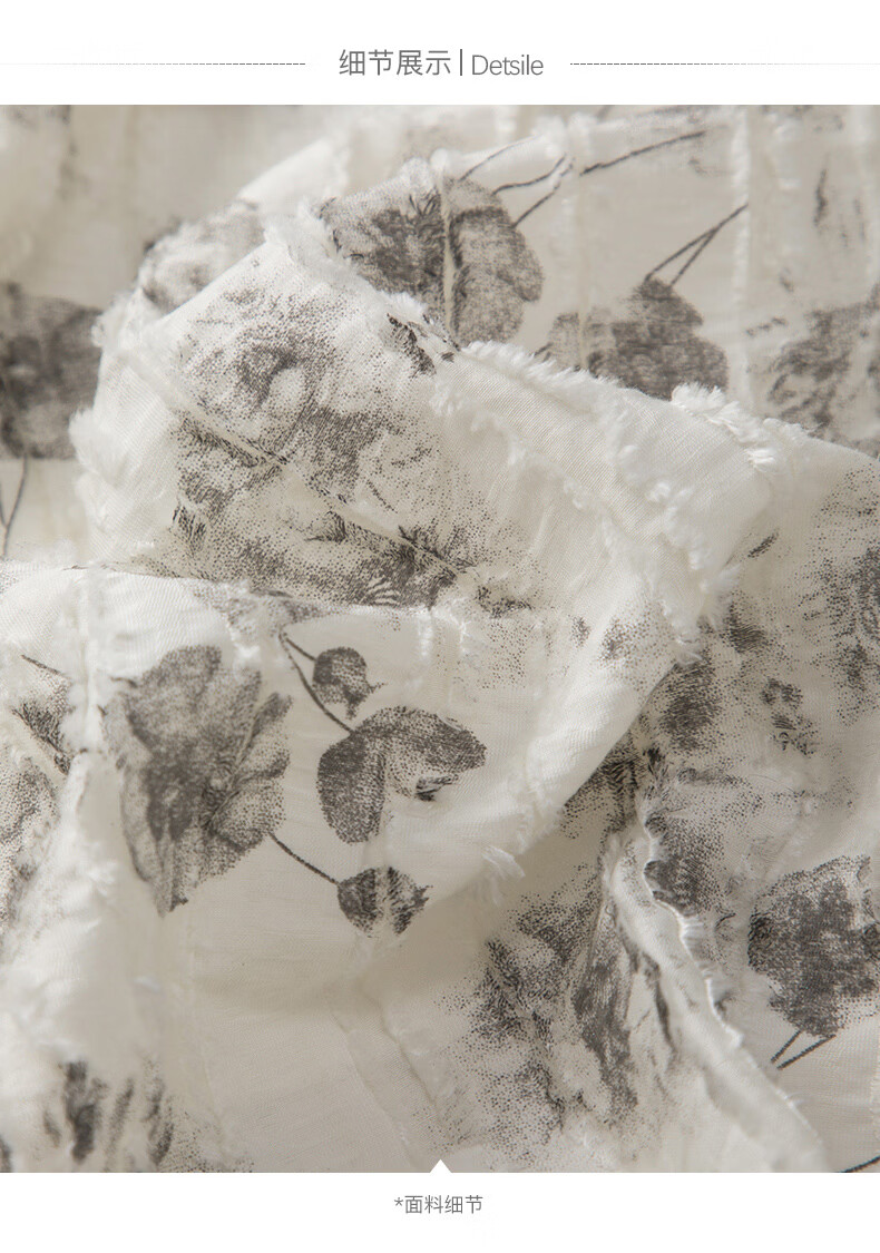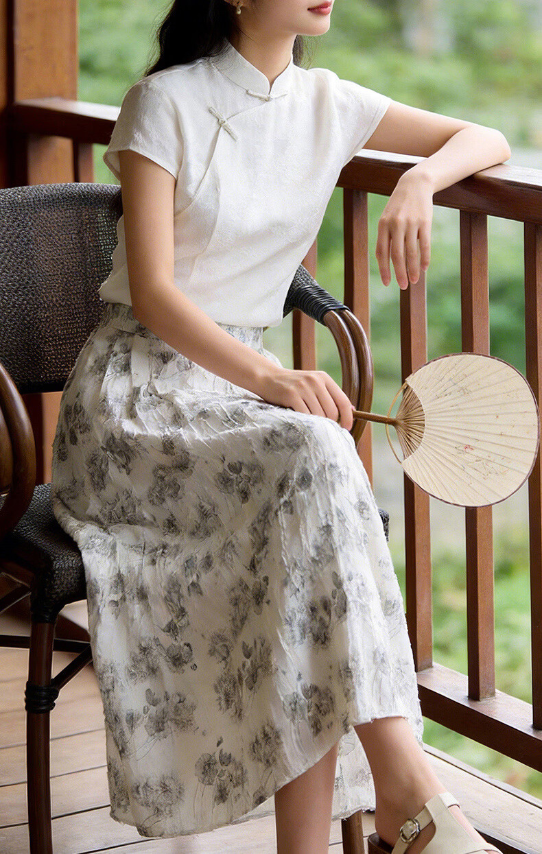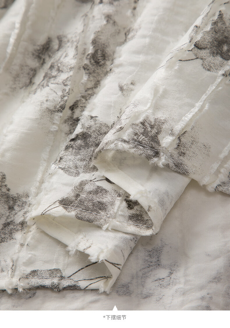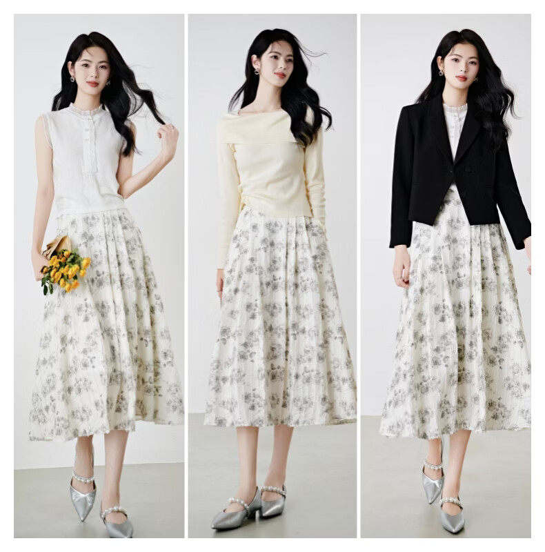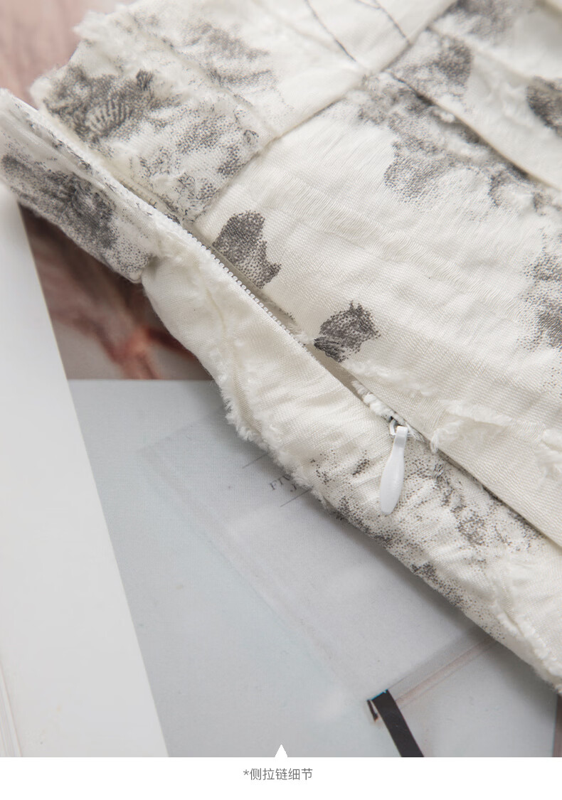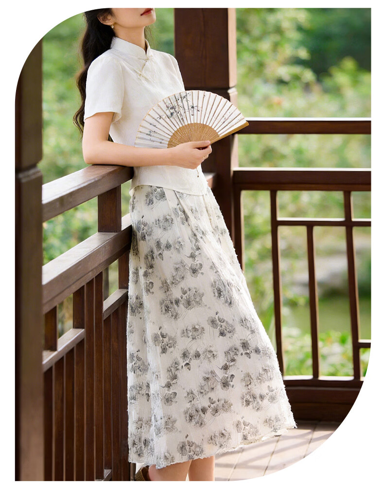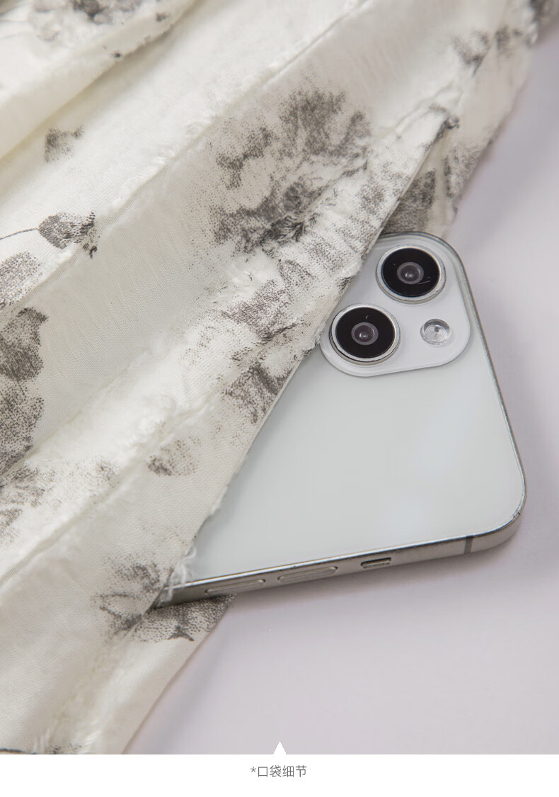晚白2026年春款时尚优雅水墨印花半裙后松紧舒适显瘦大摆带口袋半身裙 米白色 M