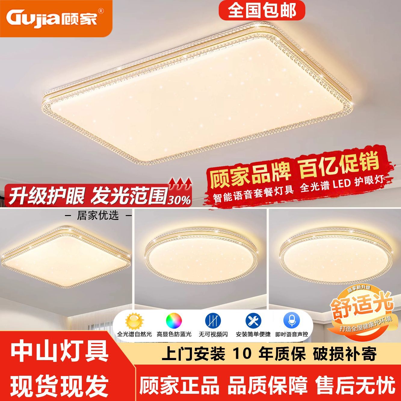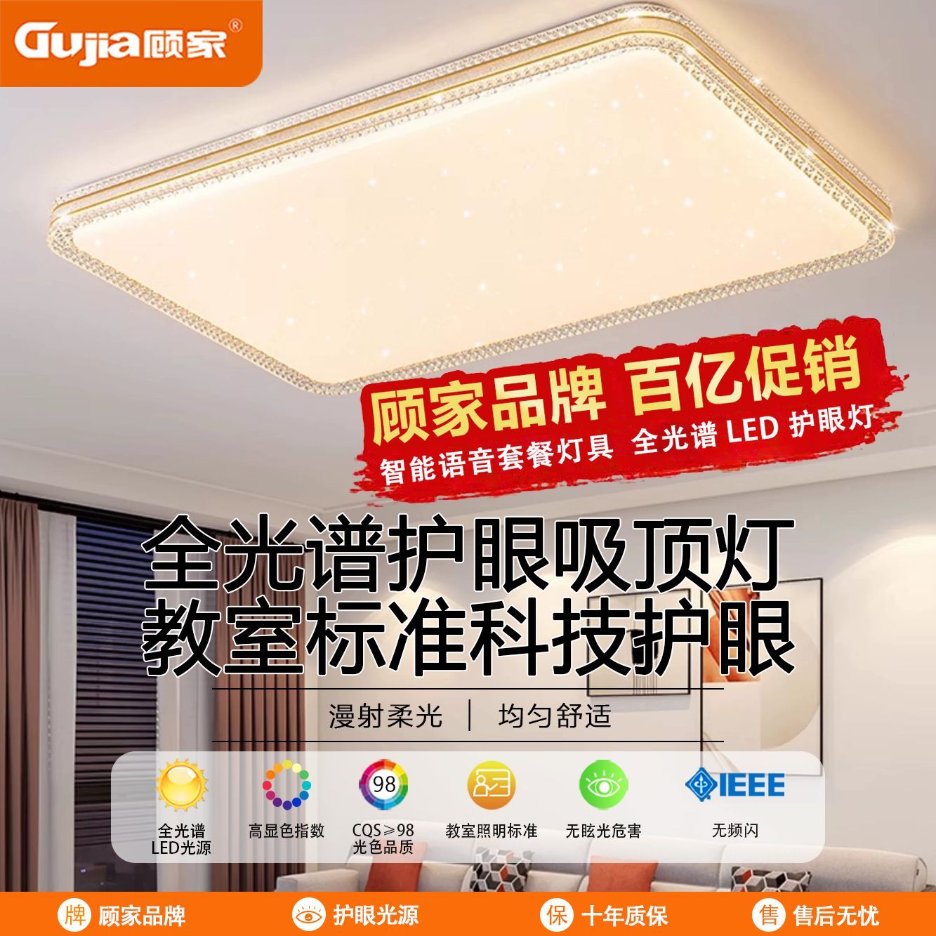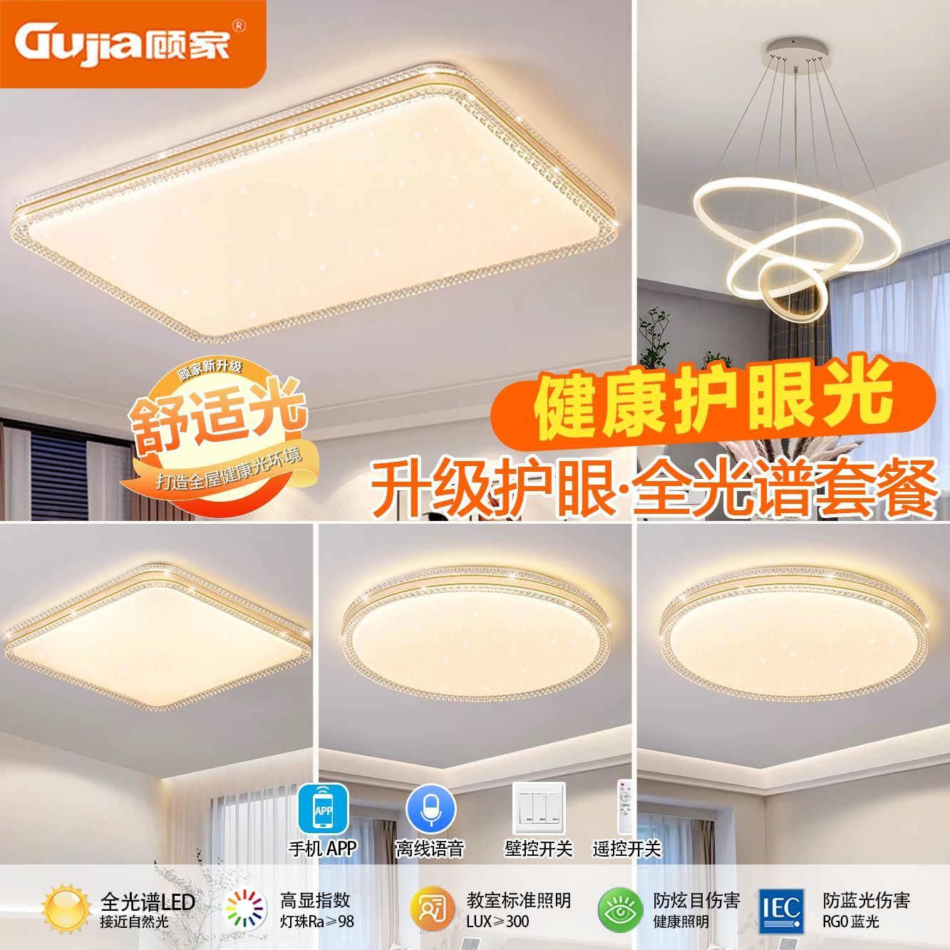 顾家全光谱护眼LED吸顶灯卧室灯现代简约客厅灯家用房间餐灯灯具