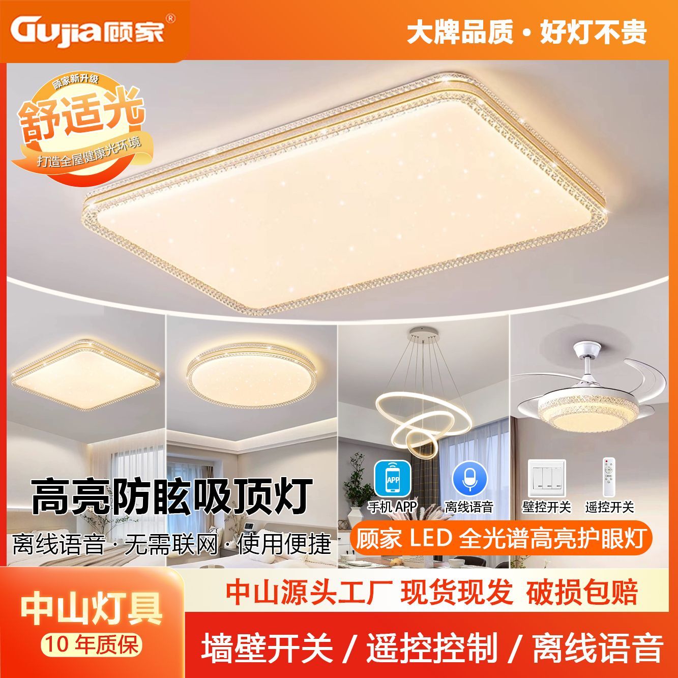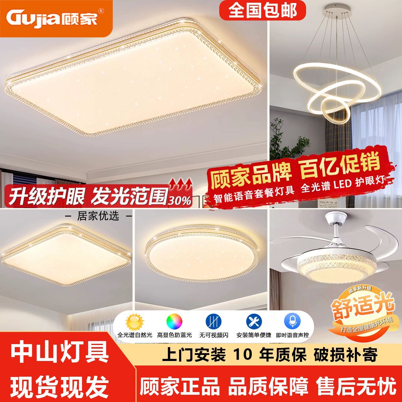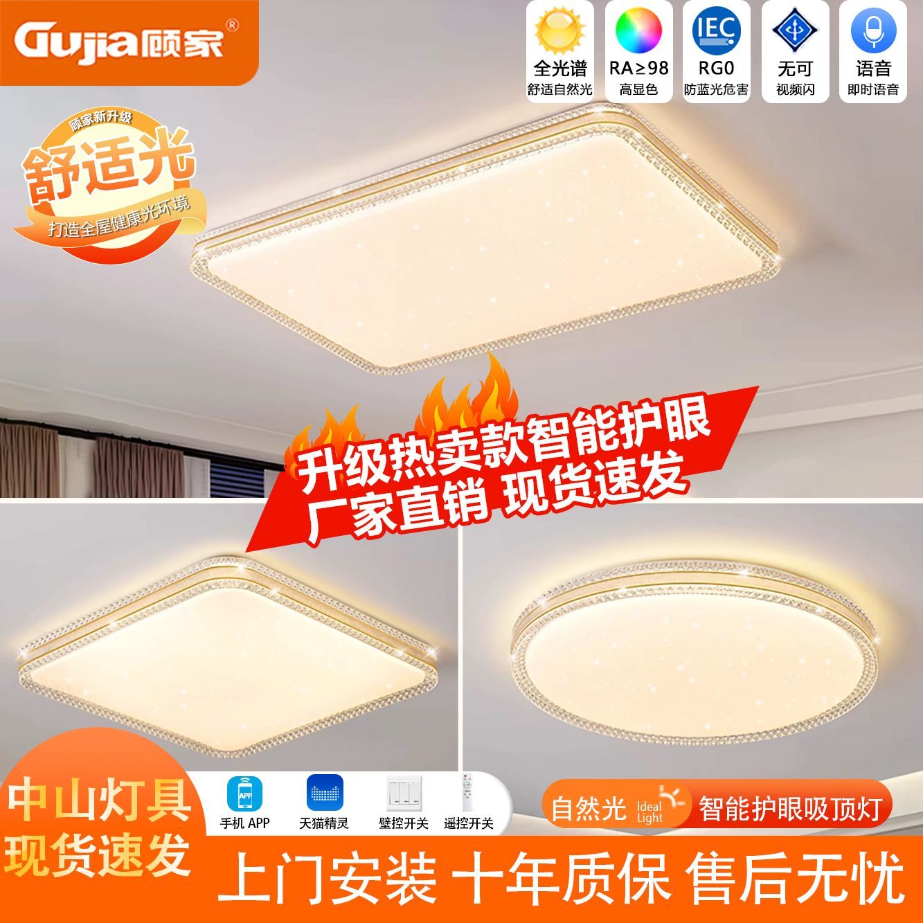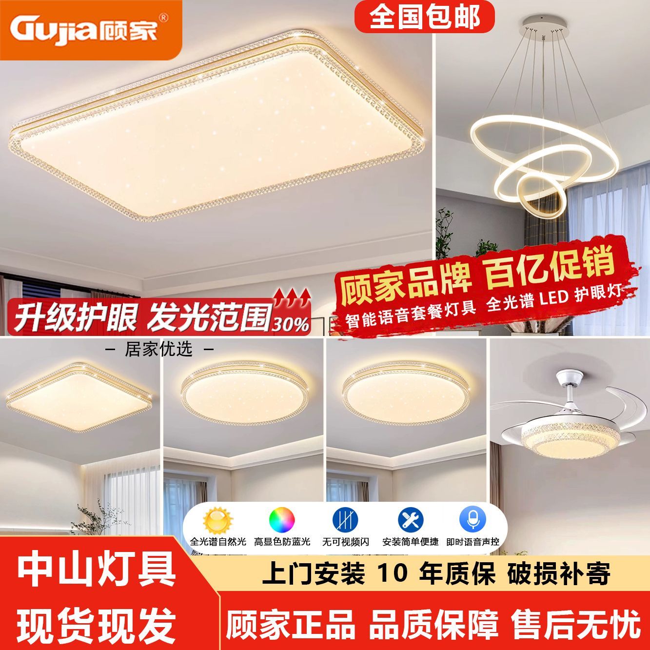 顾家全光谱护眼LED吸顶灯卧室灯现代简约客厅灯家用房间餐灯灯具
