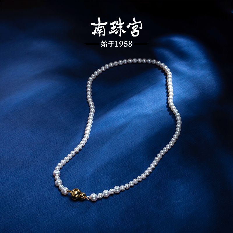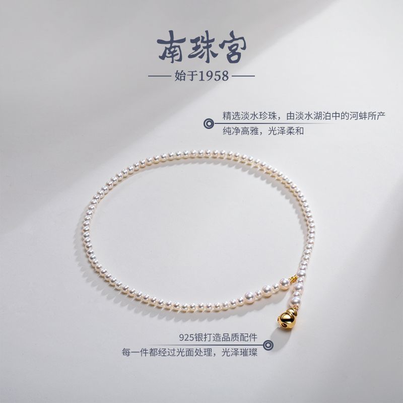 南珠宫[芙芦]淡水珍珠项链925银葫芦扣近圆强光母亲节礼物礼盒
