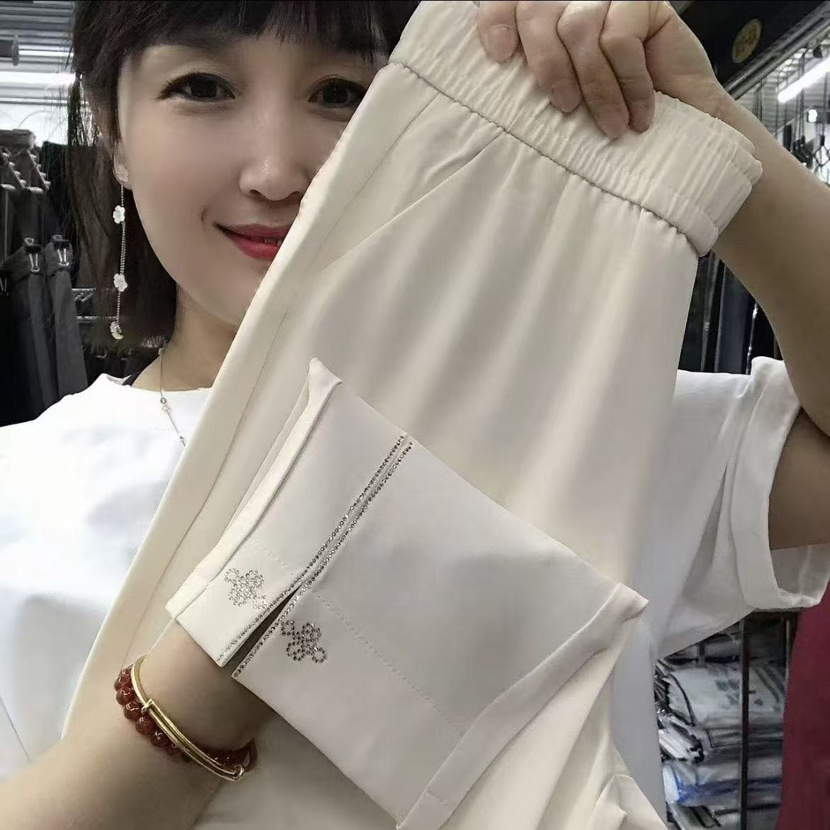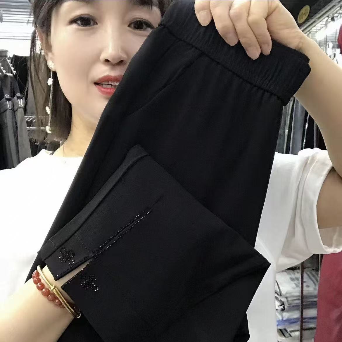 缪真高腰九分宽松哈伦哈伦裤女