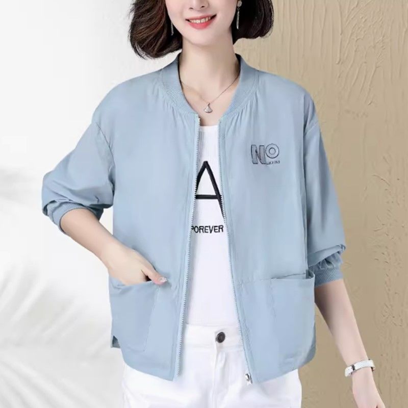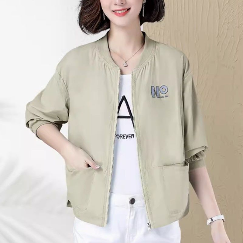 防晒衣女2024新款夏季薄款防风中年妈妈短款休闲开衫棒球服外套女