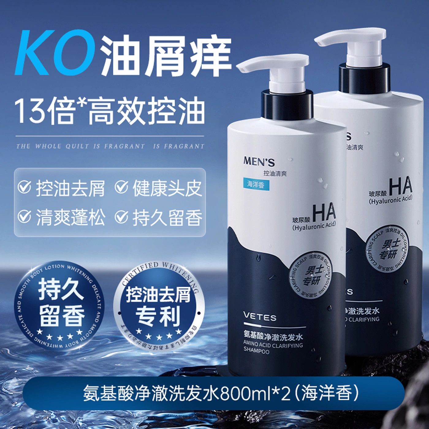 商超断货王男士洗发水控油止痒清爽蓬松去屑持久留香维特丝洗头露