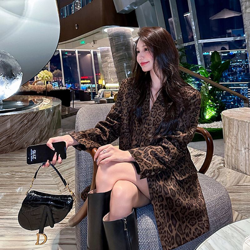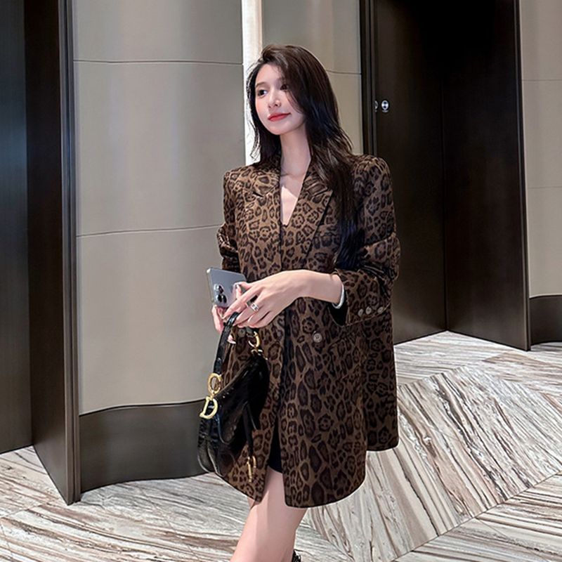 韩版鹿皮绒复古豹纹西装外套女2026春秋新款宽松休闲百搭西服上衣