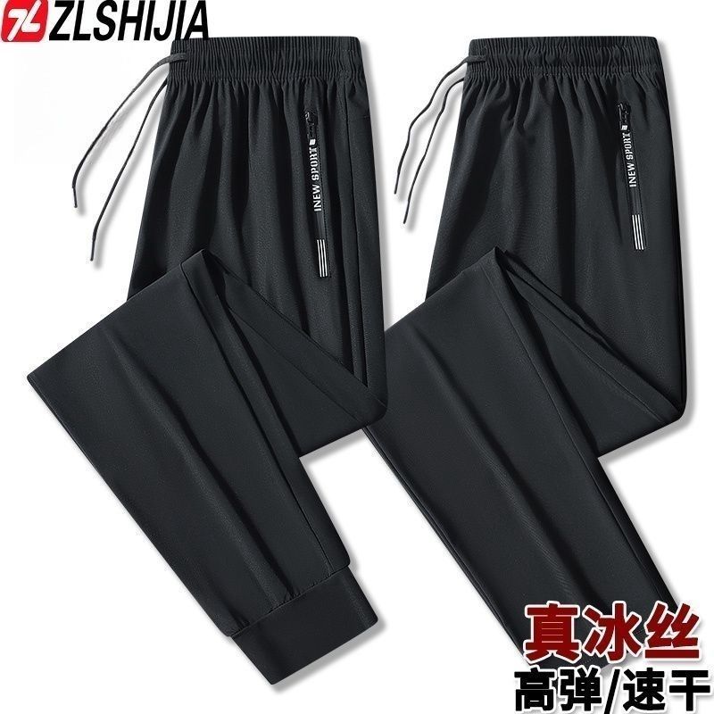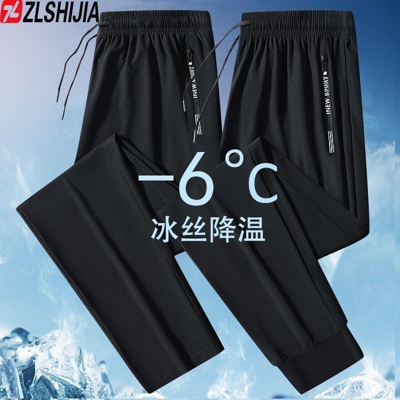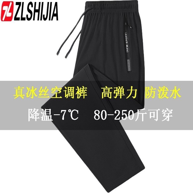 战狼世家弹力男士冰丝夏季休闲裤速干宽松空调运动薄款长裤运动裤