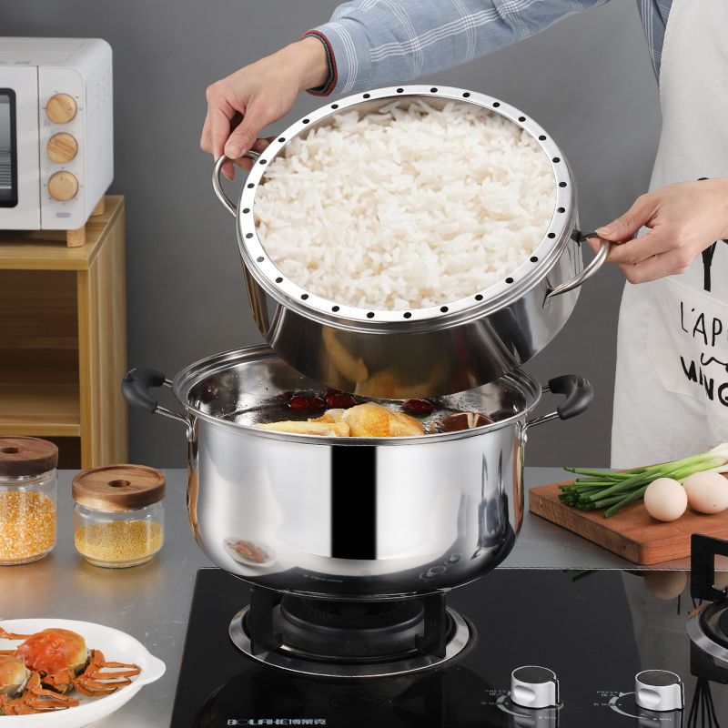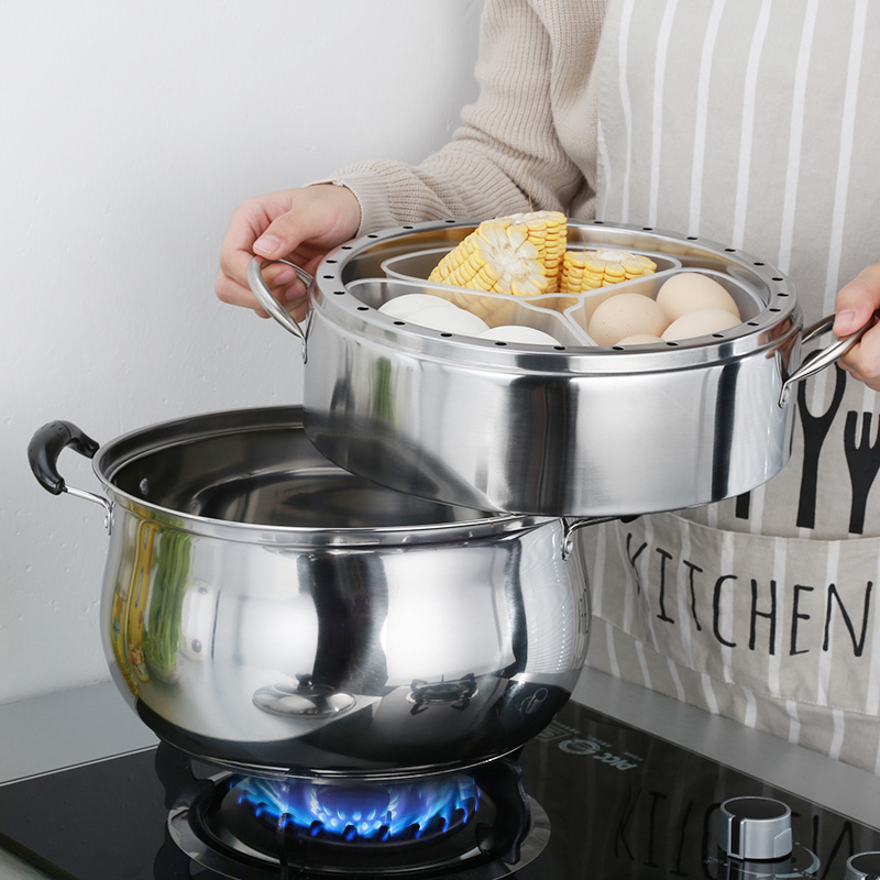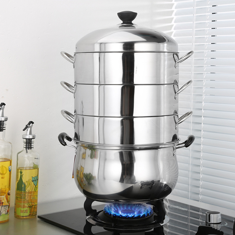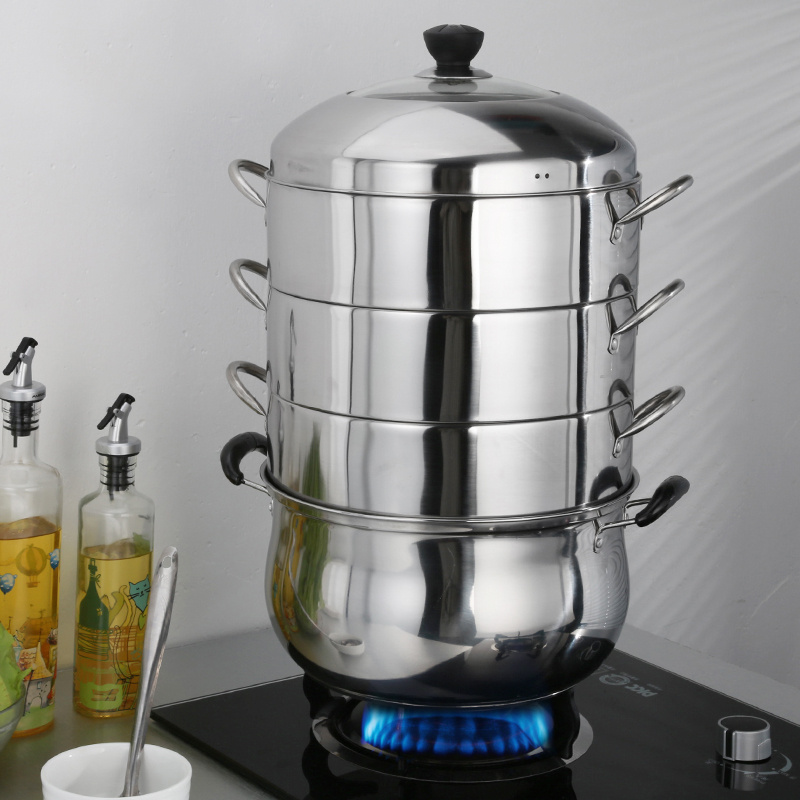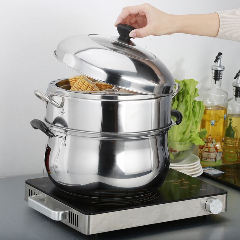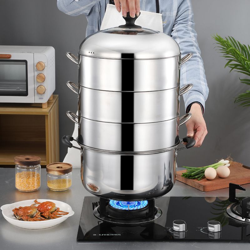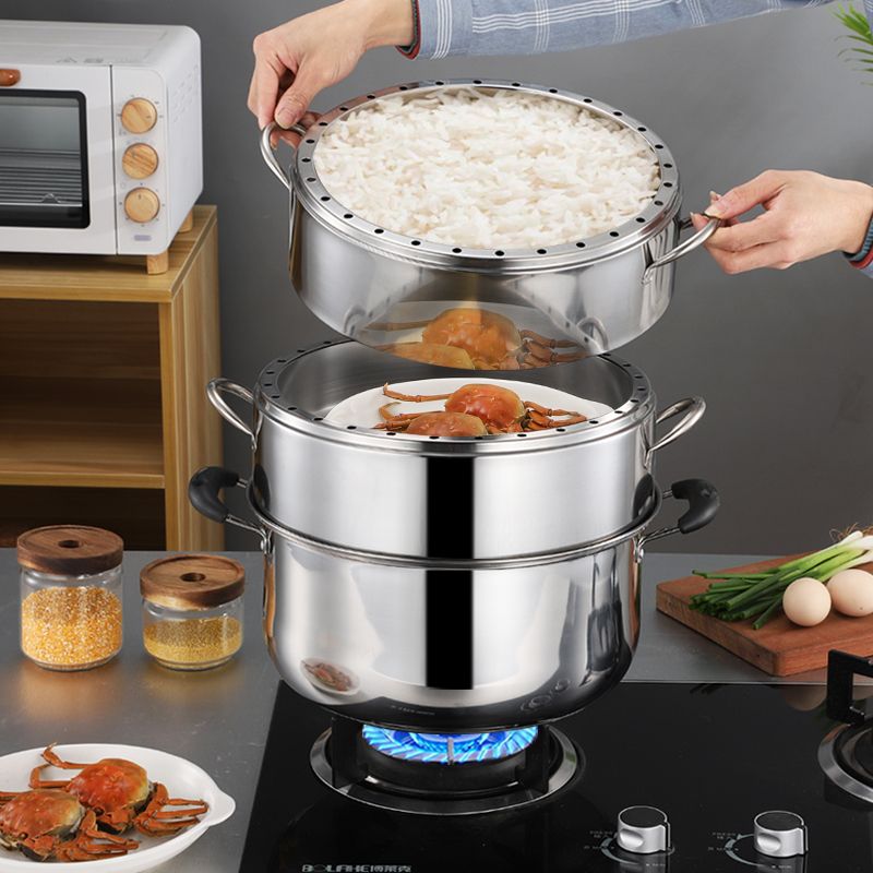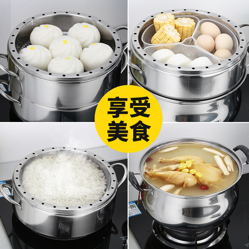 加厚款实心不锈钢蒸锅多层三层电磁炉蒸笼家用节能无孔馒头蒸饭锅