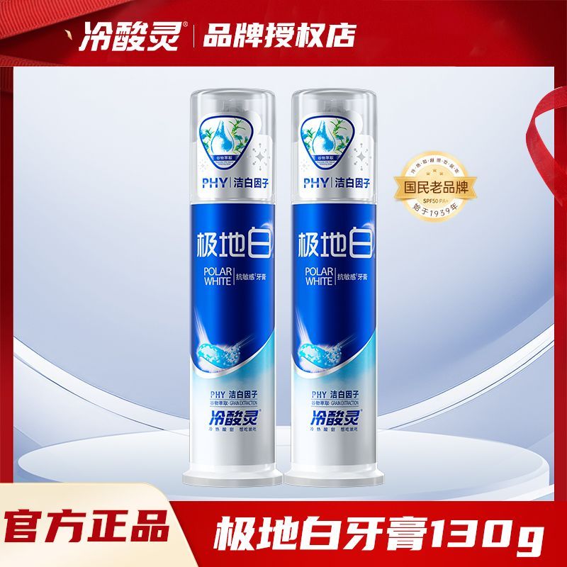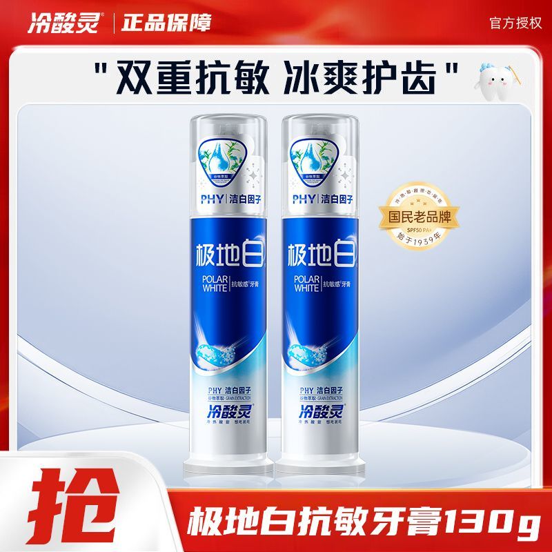 冷酸灵极地白牙膏泵式按压式双重抗敏感美白牙齿薄荷清新口气正品