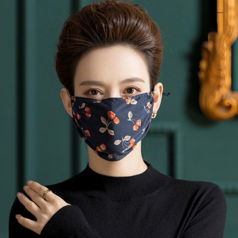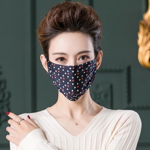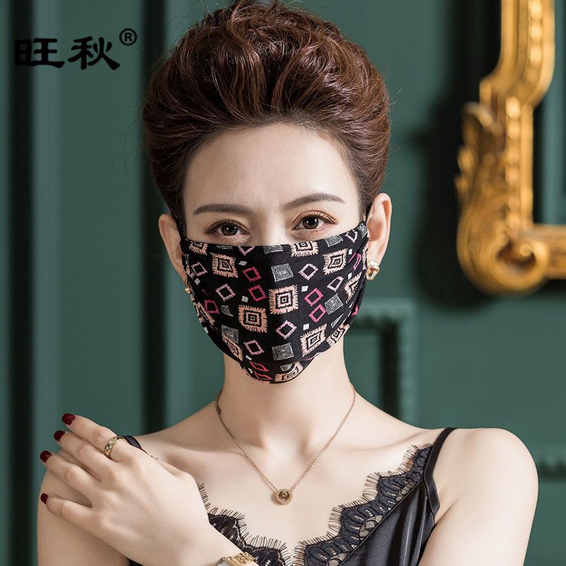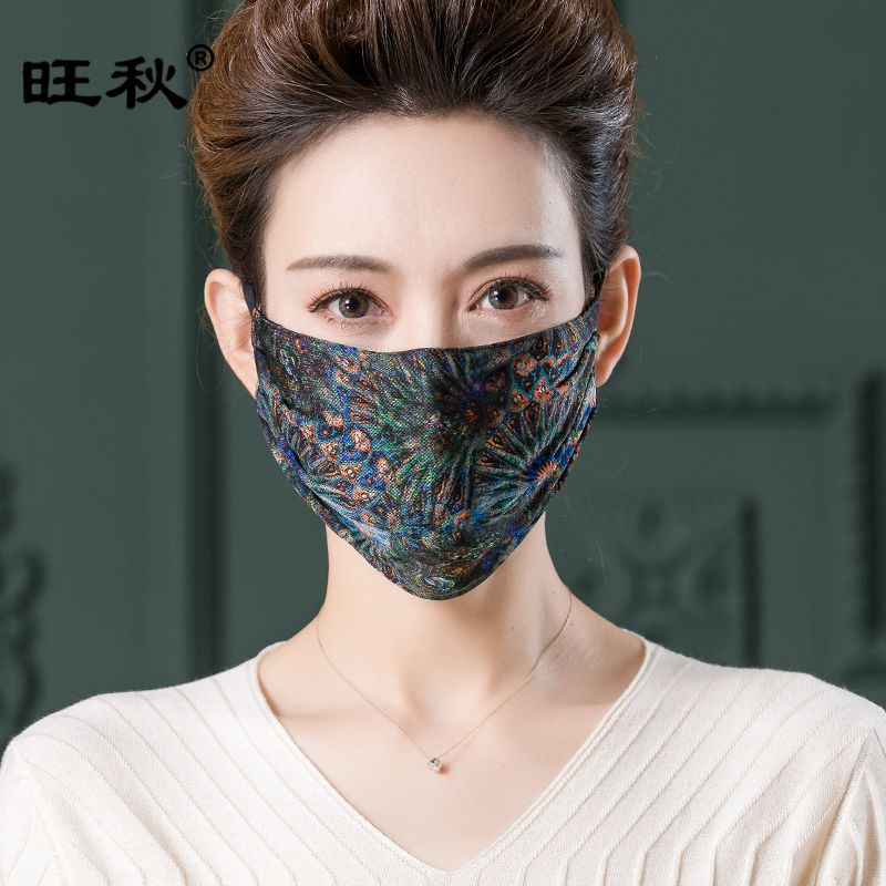 旺秋遮阳防晒透气桑蚕丝口罩薄款女士印花面罩时尚易呼吸真丝口罩