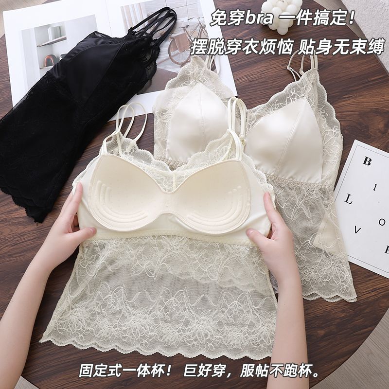 【巴黎之花】纯欲蕾丝缎面时尚内衣舒适百搭固定杯美背女气质打底