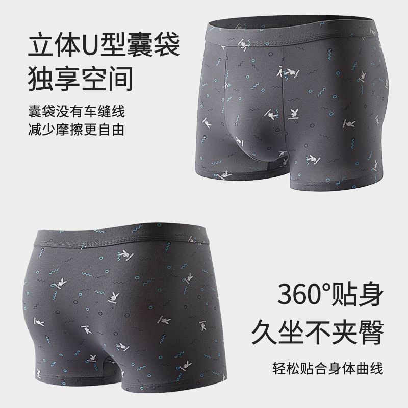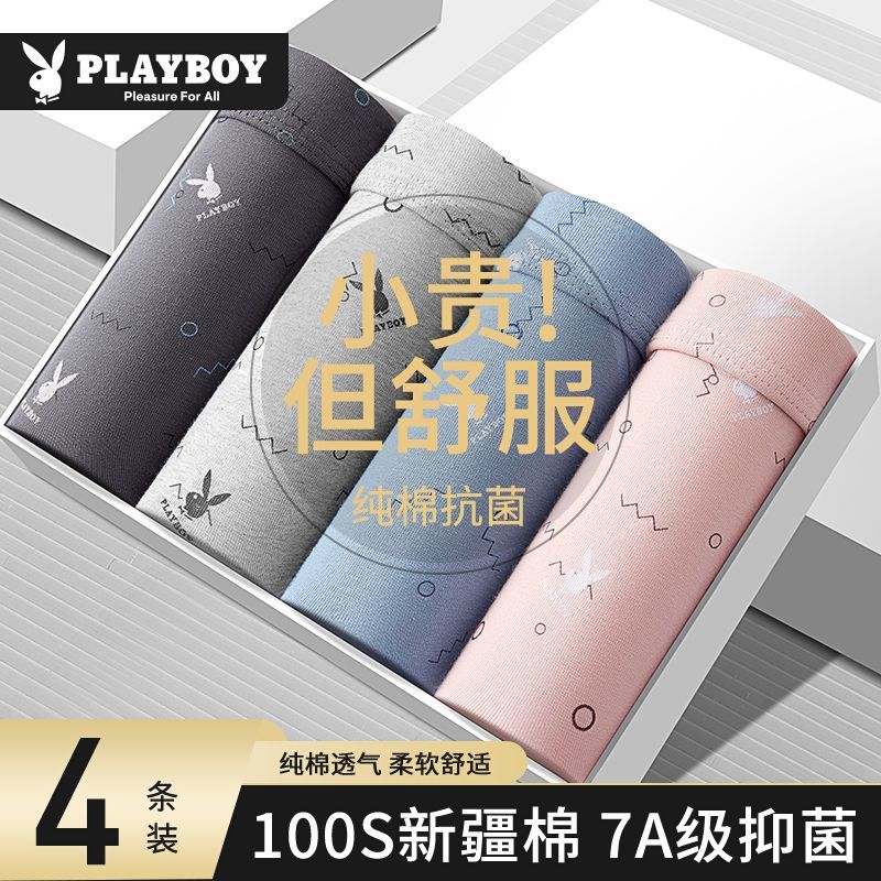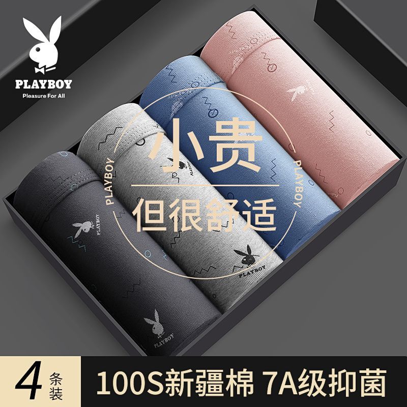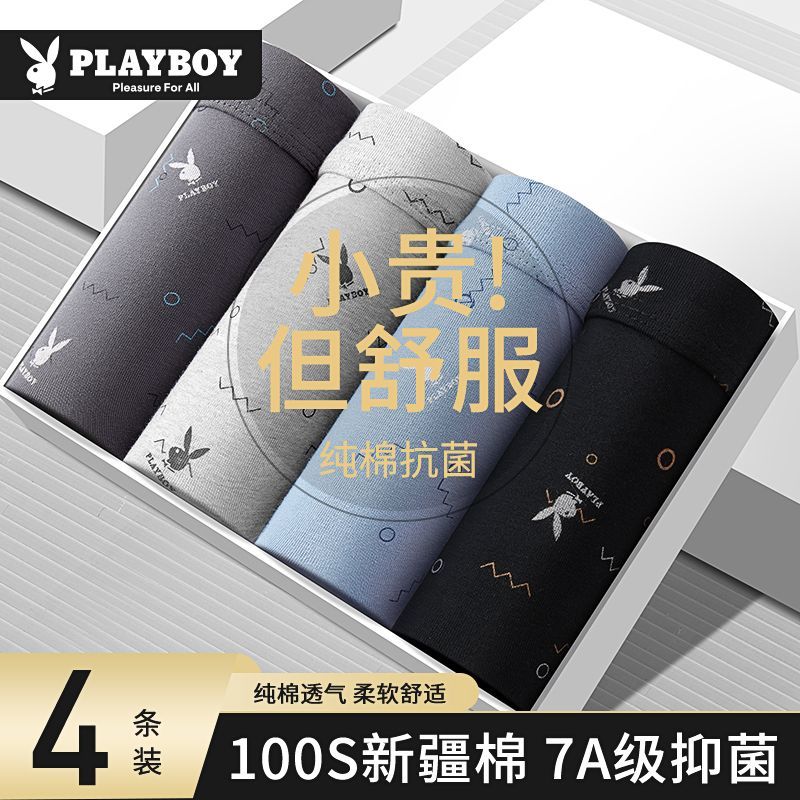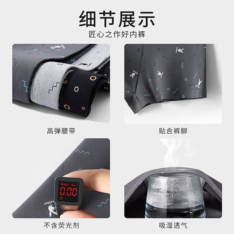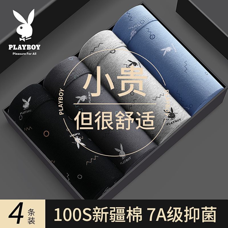 花花公子纯棉男士内裤男生抗菌透气吸汗四角印花短裤高档平角裤衩