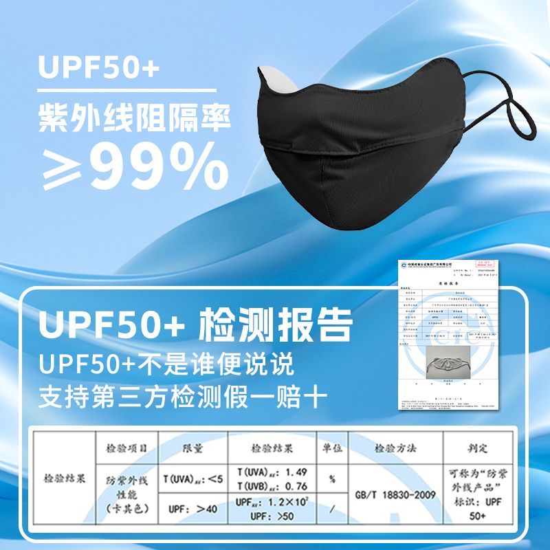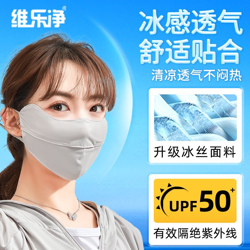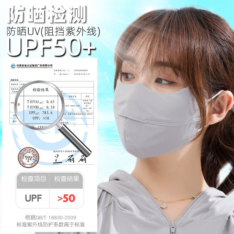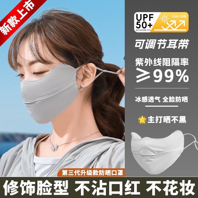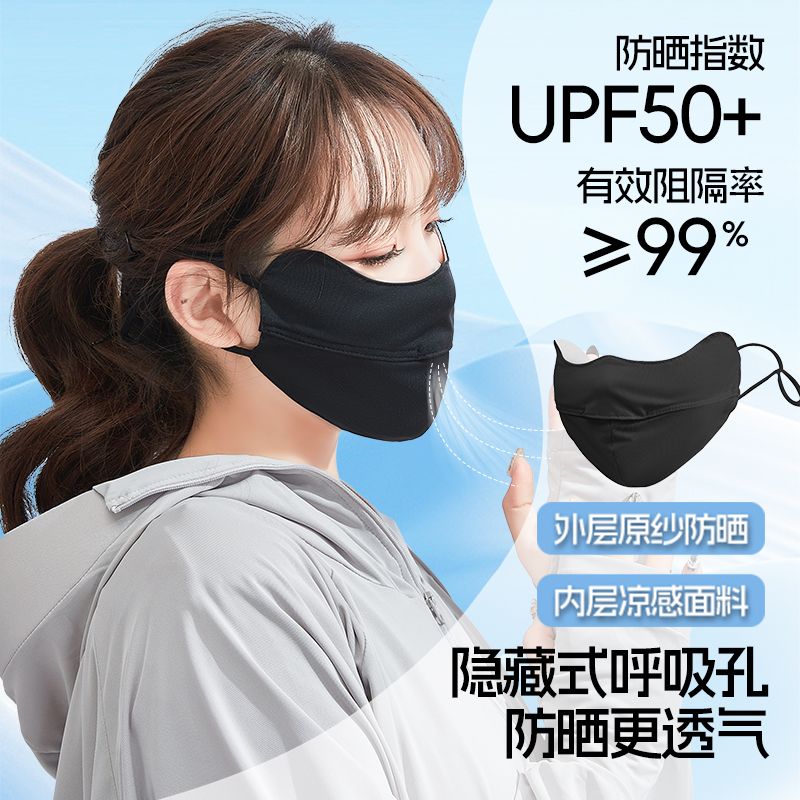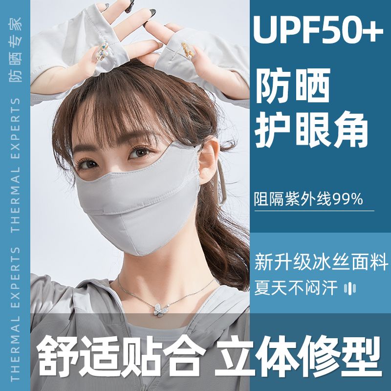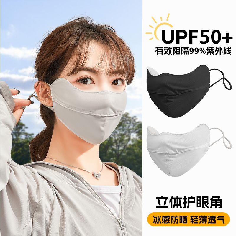 UPF50冰丝防晒口罩女夏天防紫外线脸罩薄款透气全脸护眼遮阳面罩